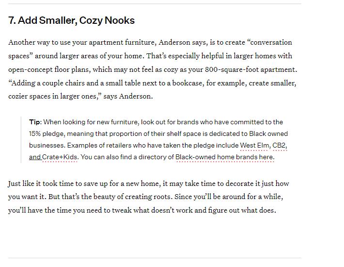 Tip: When looking for new furniture, look out for brands who have committed to the 15% pledge, meaning that proportion of their shelf space is dedicated to Black owned businesses. Examples of retailers who have taken the pledge include West Elm, CB2, and Crate+Kids. You can also find a directory of Black-owned home brands here.