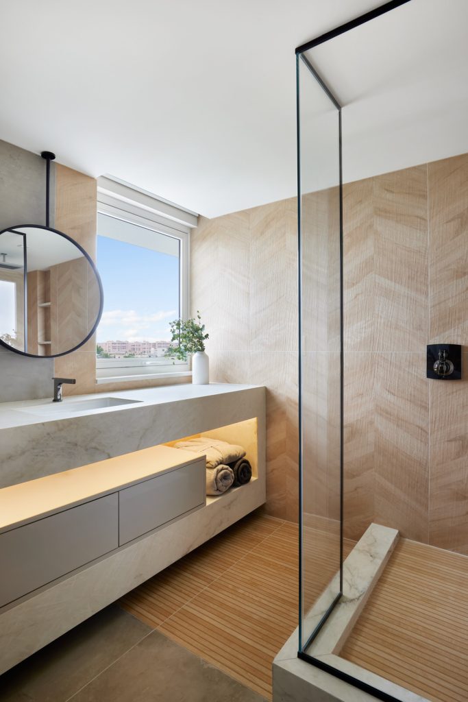 Meticulously curated bathrooms blend contemporary design with high-end fixtures, offering a spa-like retreat. This renovation exemplifies thoughtful design and craftsmanship, making it a beautiful and practical beachfront home.