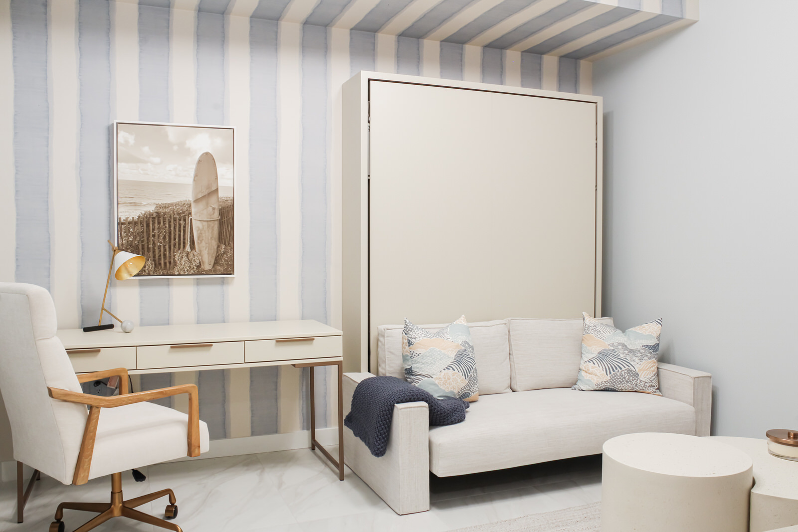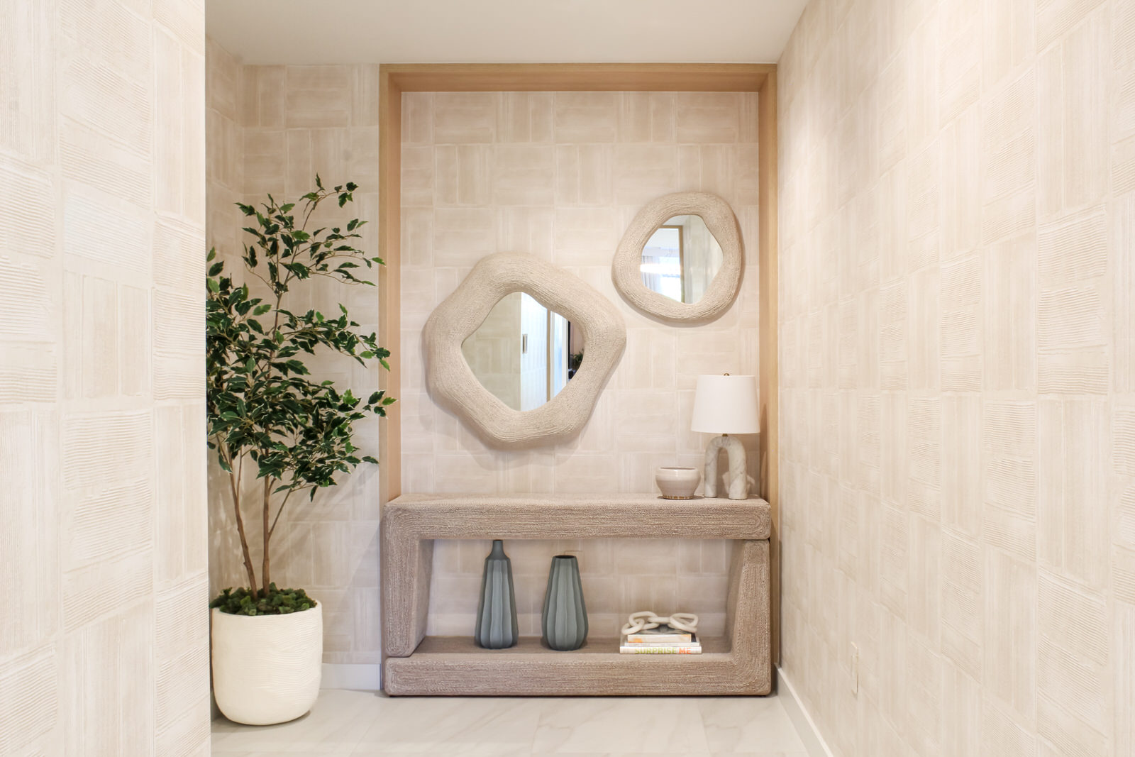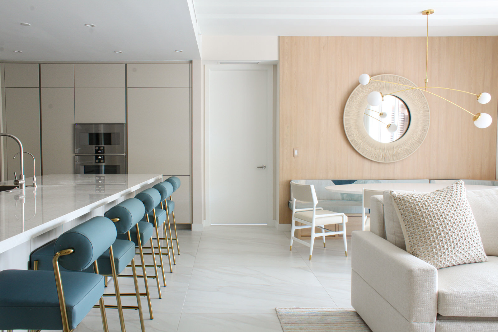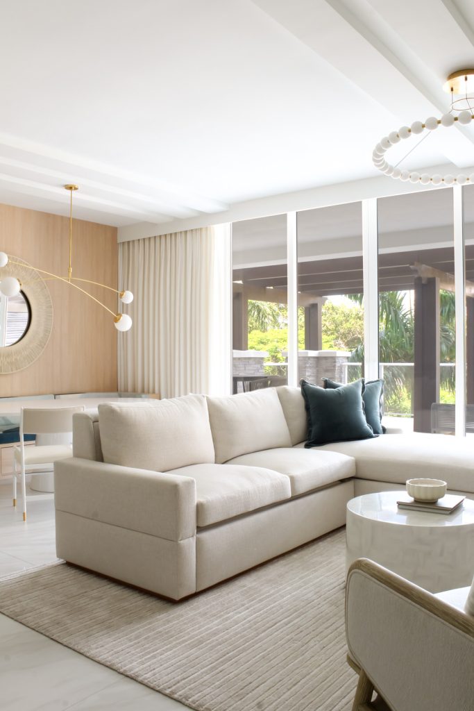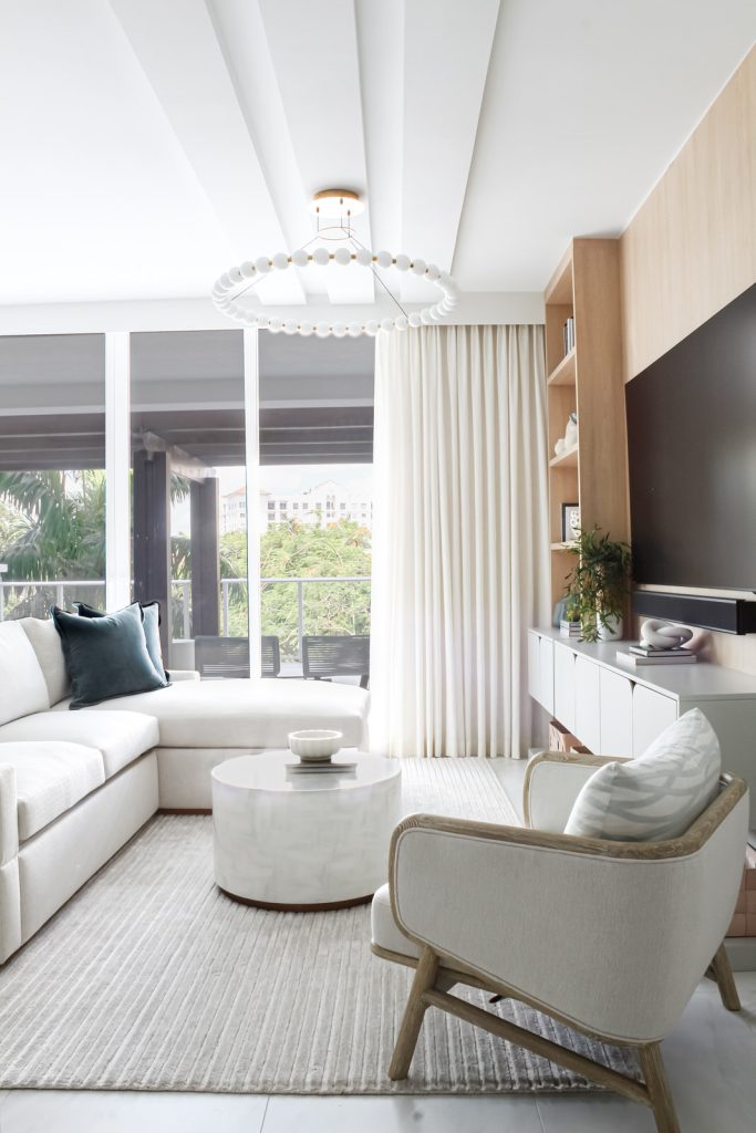 In the heart of Boca Raton, Boca Breeze is set within one of the city’s most sought-after buildings. The interiors feel organic and textured, with a palette of dreamy greens, blush pinks, and teals, all anchored by warm white oak. Every inch of the condo was carefully designed to maximize space—multi-functional rooms hide clever ways to create extra sleeping areas, though you’d never know it from the serene images. Achieving this effortless flow took meticulous planning and precision, ensuring the home feels both elevated and welcoming.