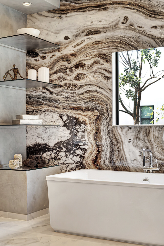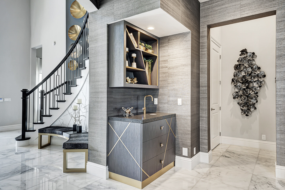 When you need to turn the volume up and set the drama on high, wall details are definitely a way to up the ante. This home is all about the final touches. With Rich and contrasting textures, the liberal use of metallic, and the interesting dynamic vertical surfaces, this home screams luxury and drama.