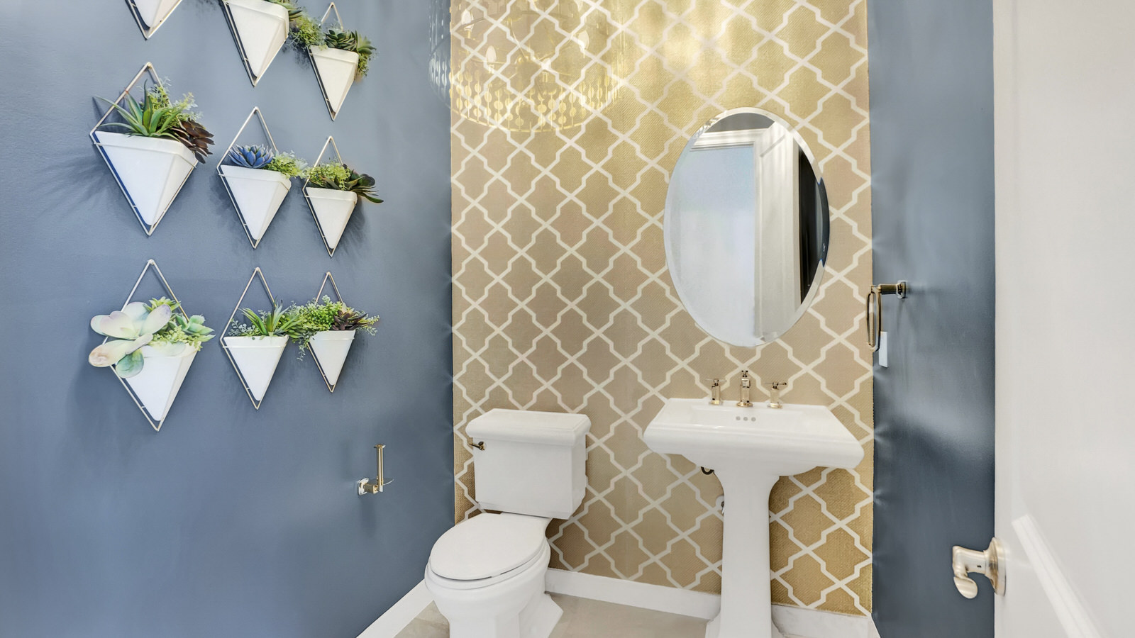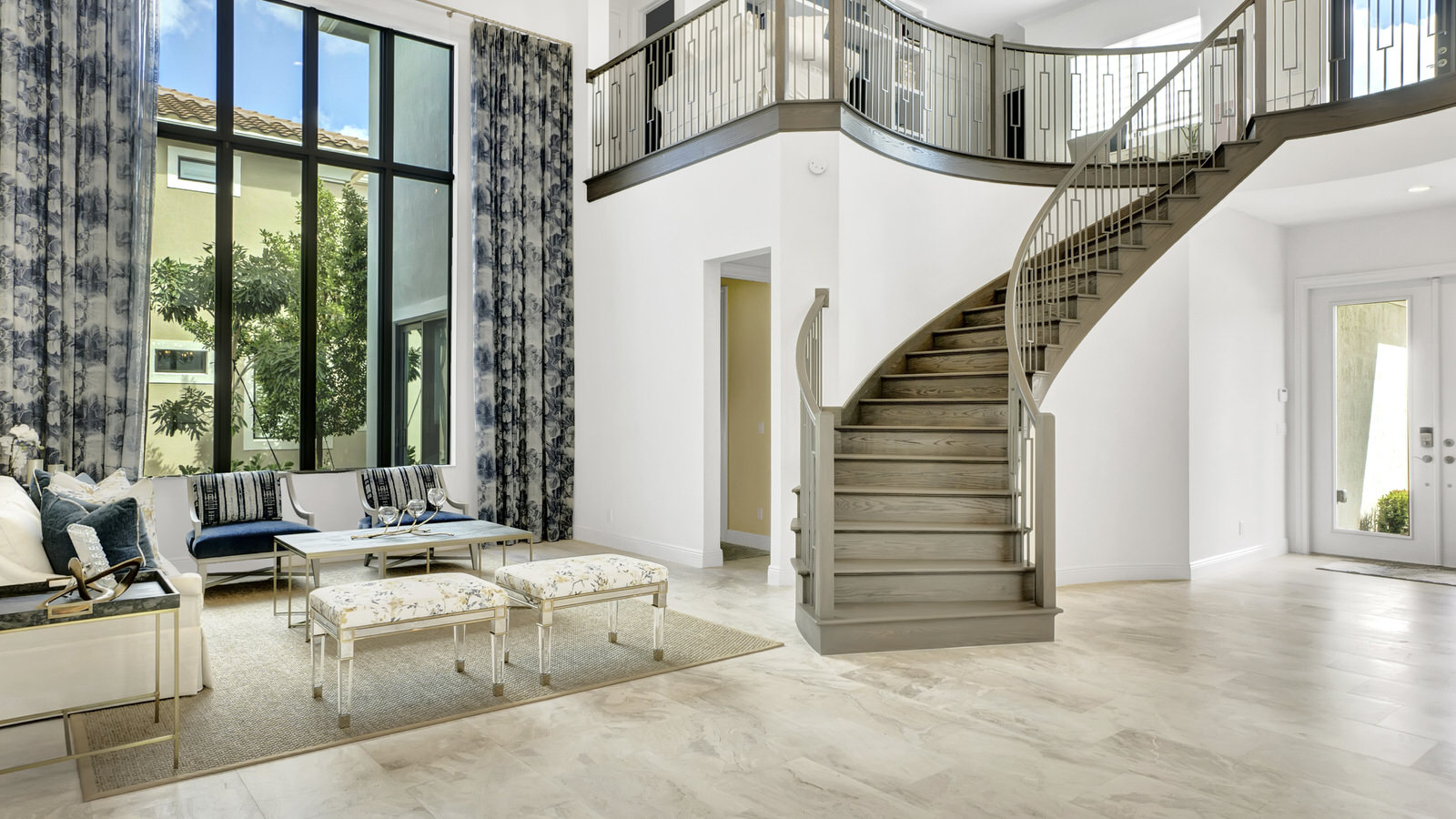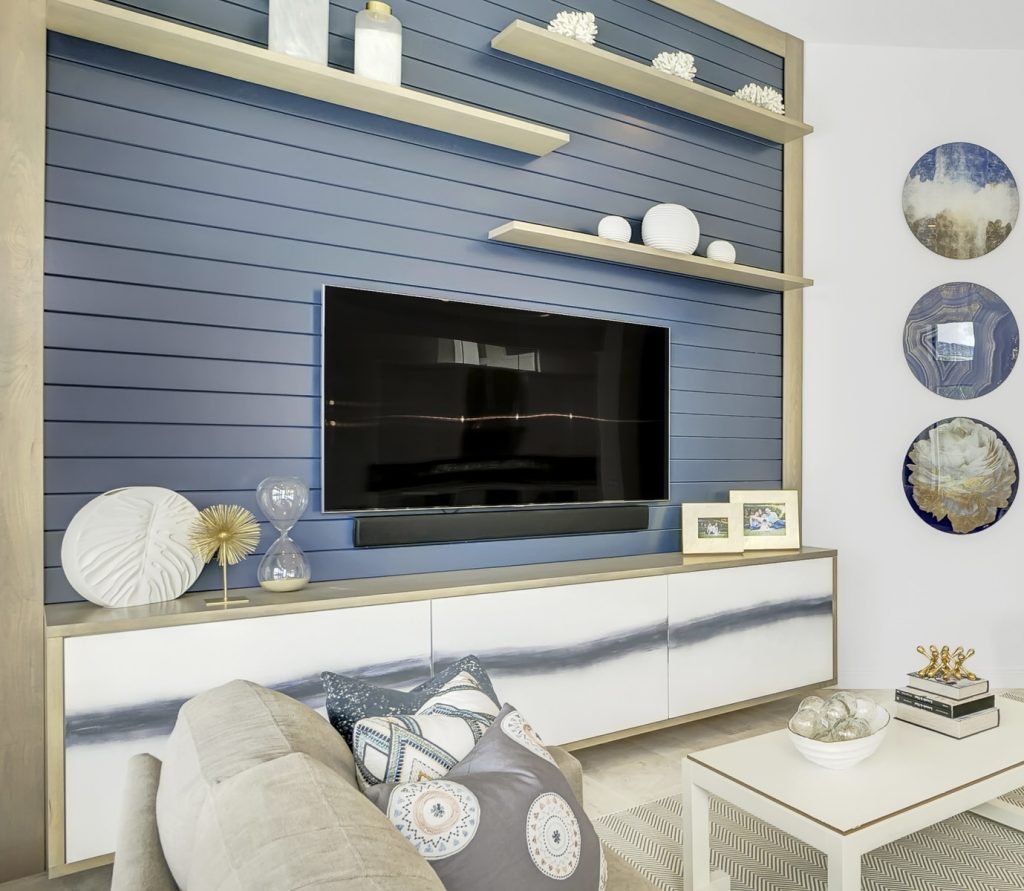 This Boca Raton community is filled with beautiful homes, all lined with emerald green grass and towering palm trees, the perfect backdrop for this truly magical home. It is hard not to take note of the quiet joy that vibrates throughout this house, with its deep blues, golds, yellows and whites all culminating seamlessly. The luxe fabrics, wallpapers, custom cabinetry and natural materials are present yet not overwhelming and the open plan design is brought to its full potential with the tightly woven interior design.