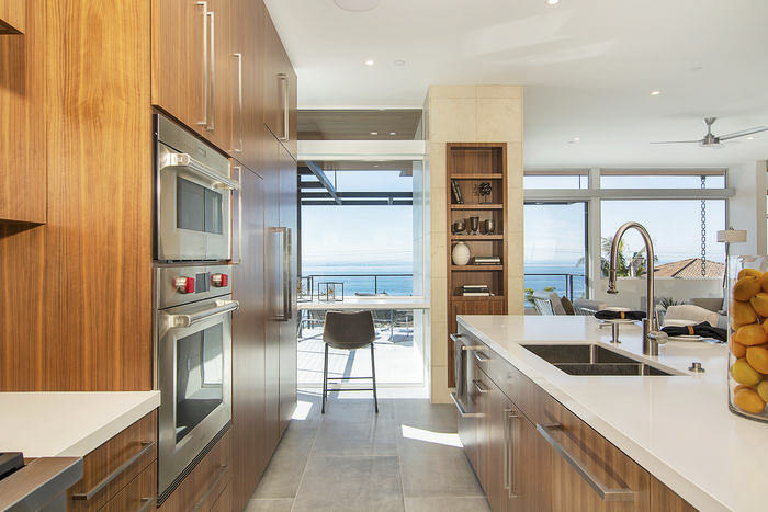 Rare is the opportunity to design a home with no owner input, and we were thrilled to take on the challenge. This Californian home overlooking the Pacific Ocean and clinging onto the mountainside spoke to us. It demanded that we use organic and natural materials. The call for desert tones were indisputable and the walnut woods perfectly played into the aesthetic. Concrete floors, limestone walls and the seascape perfectly played together against the metal elements throughout the home. This home boasted an elevator, panoramic views of the ocean, an outdoor area for the ages and even an underwater den. It was a true dream to work on our La Jolla Project, and we think it shows!