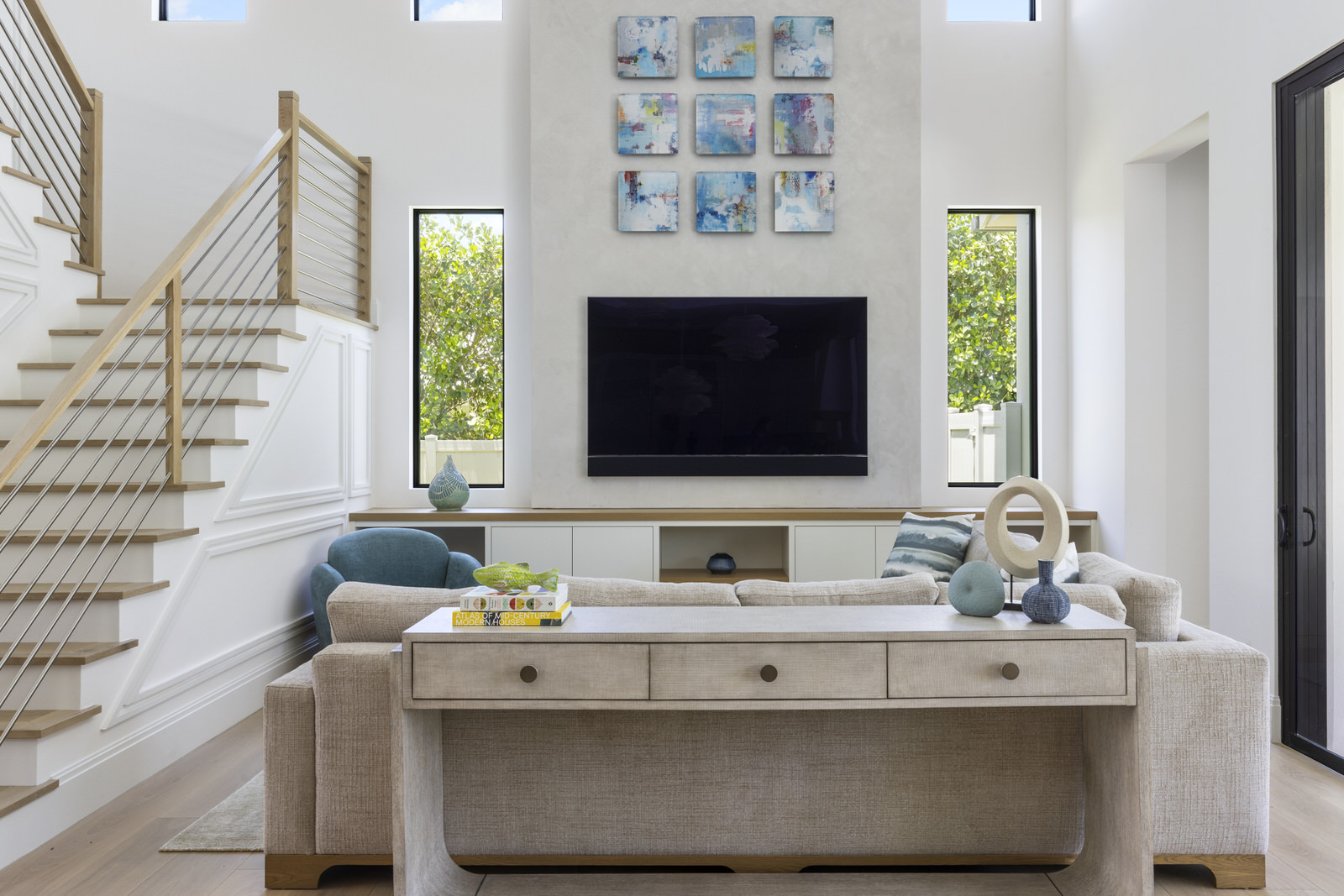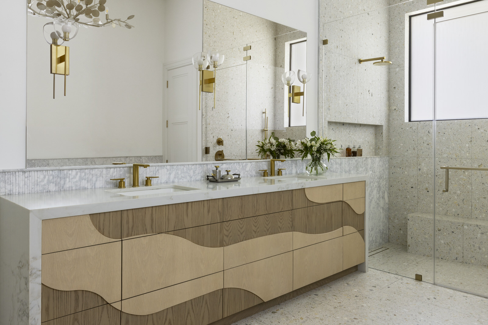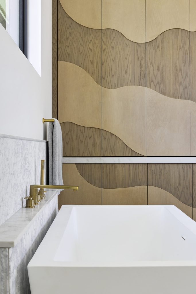 This new construction home in Delray Beach’s Lake Ida neighborhood was designed by Nikki Levy Interiors from foundation to furniture, blending South Florida’s laid-back lifestyle with a fresh mix of coastal and mid-century design. Every inch is considered—from the glowing Crystallo kitchen countertops and palm leaf–patterned tile to the custom cabinet fronts and layered marbles in the primary bath. Terrazzo, ceramics, and Venetian plaster add warmth and artistry throughout. The result? A cohesive, comfortable, and wonderfully eclectic home that feels refined but never overdone. Interior design in South Florida doesn’t get more tailored than this.
